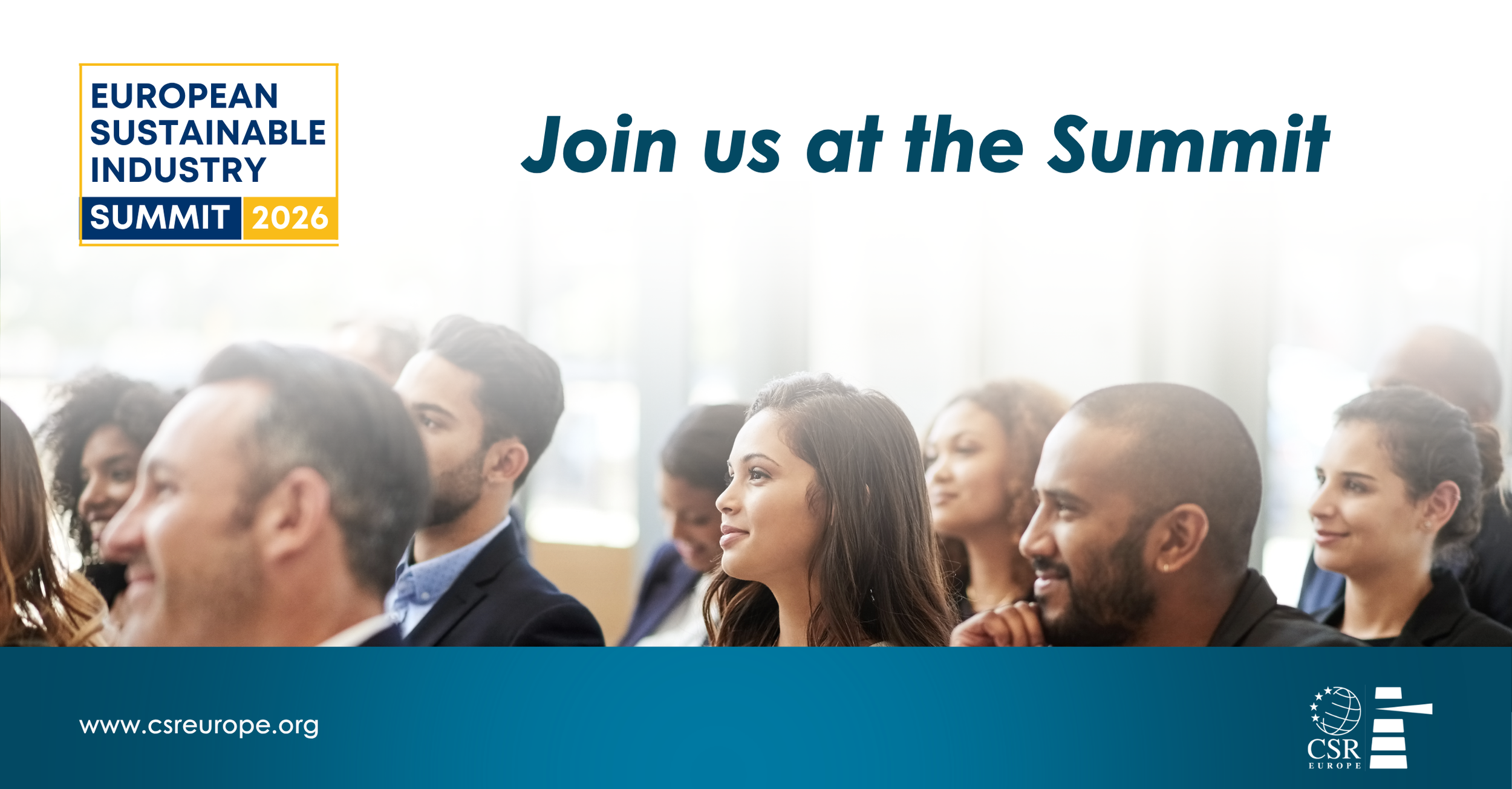 Access ready-to-use visuals and banners to help you share the European Sustainable Industry Summit 2026 with your network. Download LinkedIn images, newsletter headers, and website banners below. For additional materials or specific formats, feel free to communications@csreurope.org